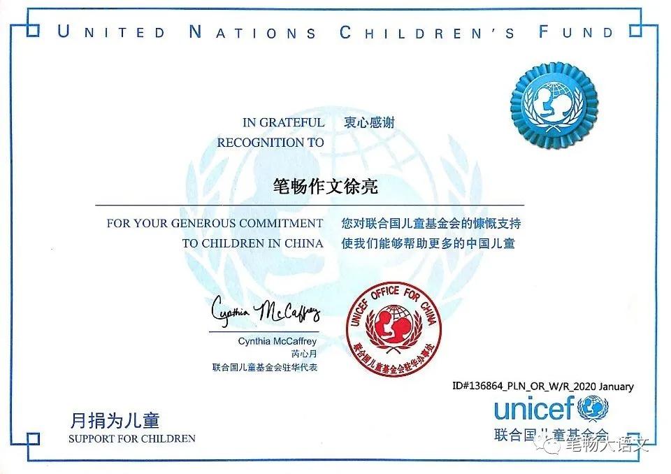 联合国儿童基金会再次致信笔畅作文总部
